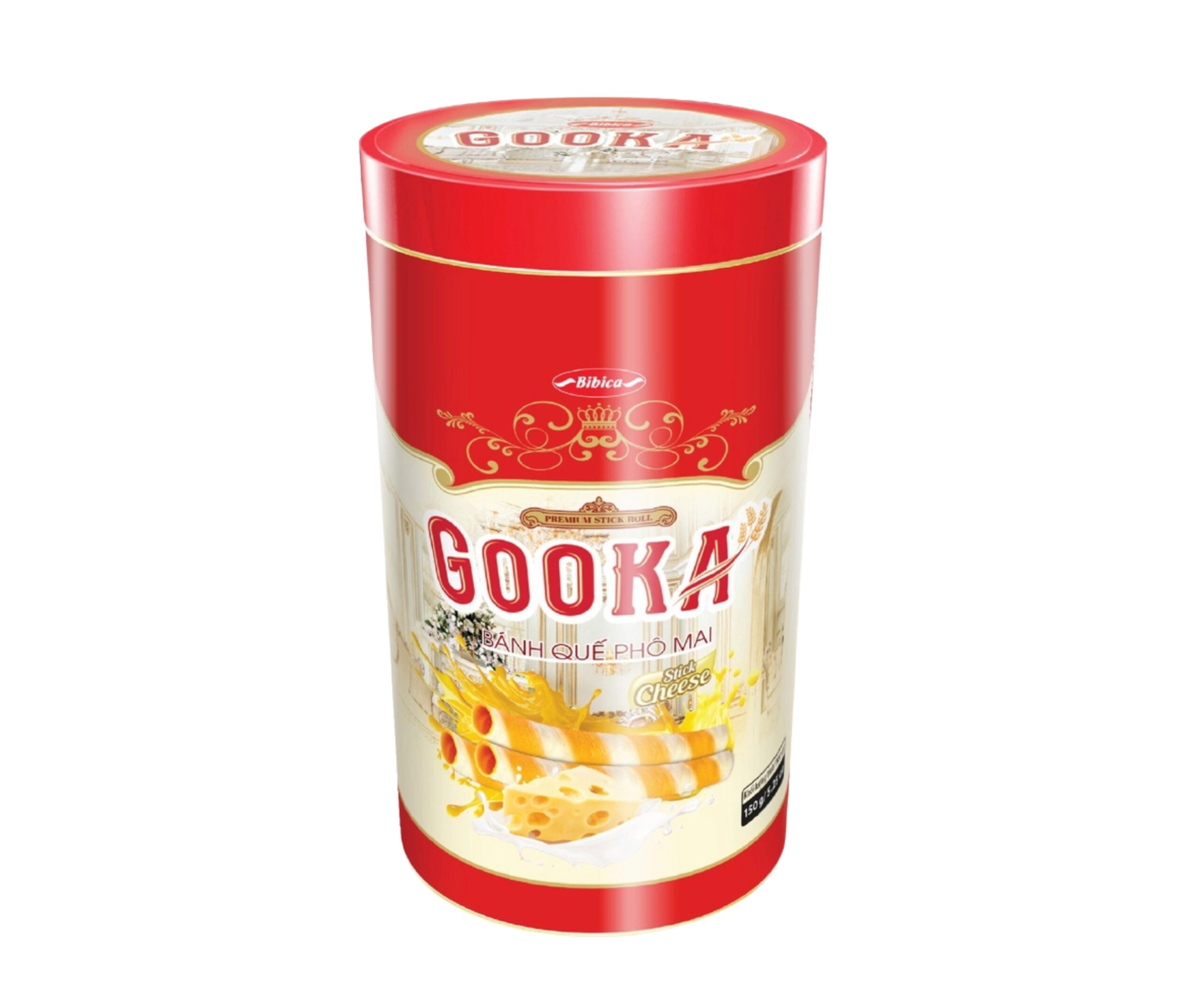 Bánh Quế GooKa Phô mai Bibica giòn tan, vị phô mai thơm béo. Sản phẩm là món quà Tết ý nghĩa, mang đến sự ngọt ngào, thịnh vượng và niềm vui thích cho người nhận trong những ngày đầu xuân.